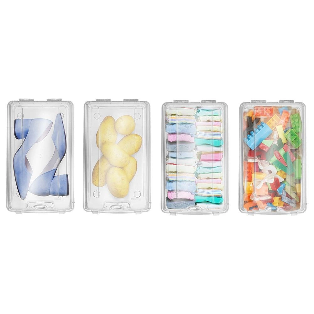 Pratique, la boîte transparente avec couvercle garde vos affaires bien organisées et au sec. Grâce à ses dimensions compactes 33 × 19 × 10 cm, elle est idéale pour les chaussures et les petits objets de la maison. Conception en plastique transparent et robuste pour vérifier le contenu d’un coup d’œil, fermeture à clips pour une fermeture sûre et ouverture de ventilation dans le couvercle pour garder le contenu frais, sans humidité. Structure empilable pour gagner de la place dans le dressing, le cellier ou le bureau.