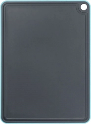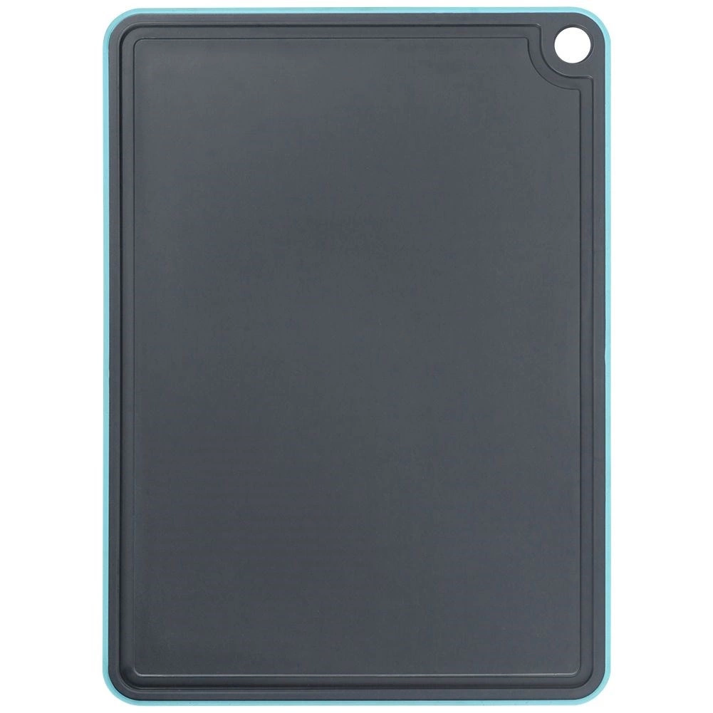 Pratique planche à découper grise avec bord turquoise de dimensions 32 × 23 cm, idéale pour la préparation quotidienne des repas. Elle est robuste, n’absorbe pas les odeurs, possède une gouttière d’égouttage pour les jus et un rebord antidérapant pour plus de stabilité. Grâce à son trou de suspension et à sa compatibilité lave-vaisselle, elle est facile à entretenir et peu encombrante.