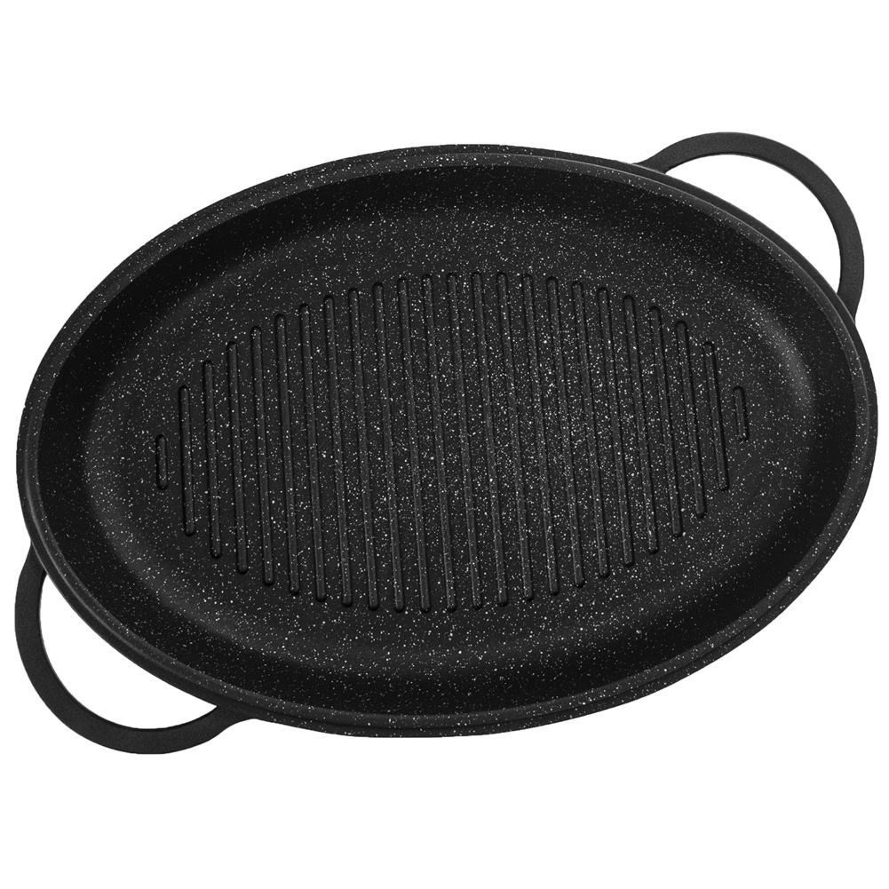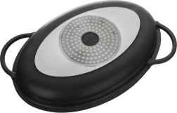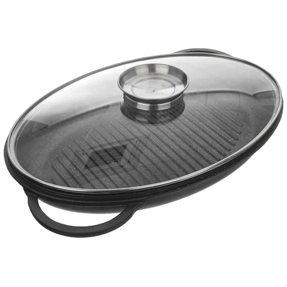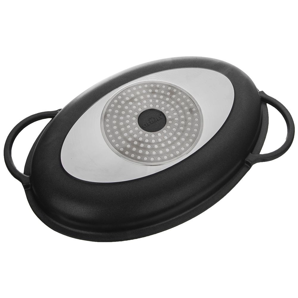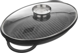 Découvrez une poêle grill polyvalente qui combine les fonctions d’une poêle et d’un plat à rôtir. La forme ovale avec reliefs surélevés crée de belles marques de grill et évacue l’excès de graisse, tandis que le couvercle en verre avec doseur intégré permet d’ajouter vin ou bouillon sans soulever le couvercle. Idéale pour la viande, le poisson et les légumes, pour saisir, mijoter ou rôtir.