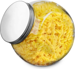 Ce grand bocal en verre de 3 litres est idéal pour un stockage organisé et hygiénique des aliments secs. Le verre transparent et épais est résistant et sûr pour un usage quotidien, tandis que le couvercle de qualité en acier inoxydable garantit une fermeture fiable et une fraîcheur prolongée du contenu.