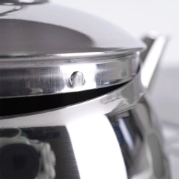 La bouilloire est universelle – adaptée à tous les types de tables de cuisson, y compris l’induction. Le couvercle amovible facilite le remplissage et le nettoyage, et l’anse ergonomique assure un transport confortable. Elle peut également être utilisée comme pichet élégant pour les boissons chaudes ou froides.
