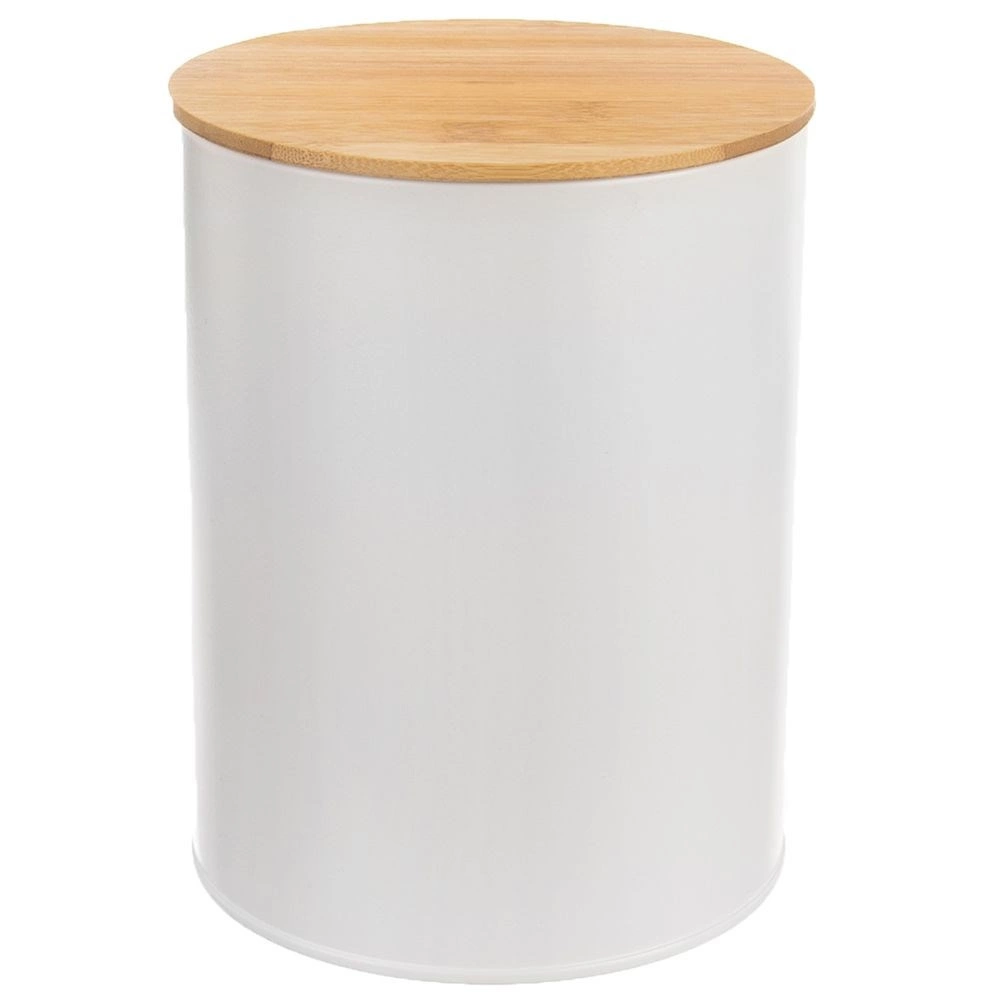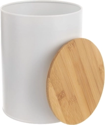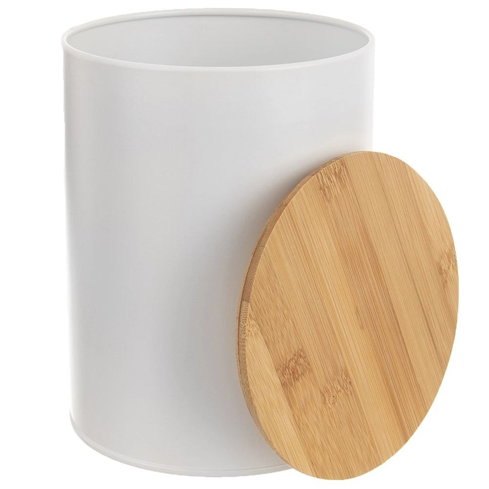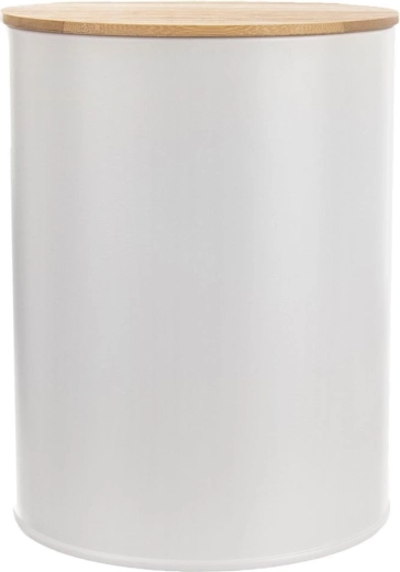 Boîte de cuisine en métal blanc avec couvercle en bambou 2,3 l