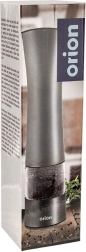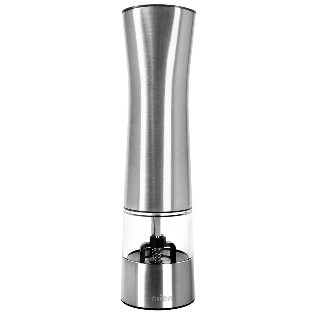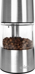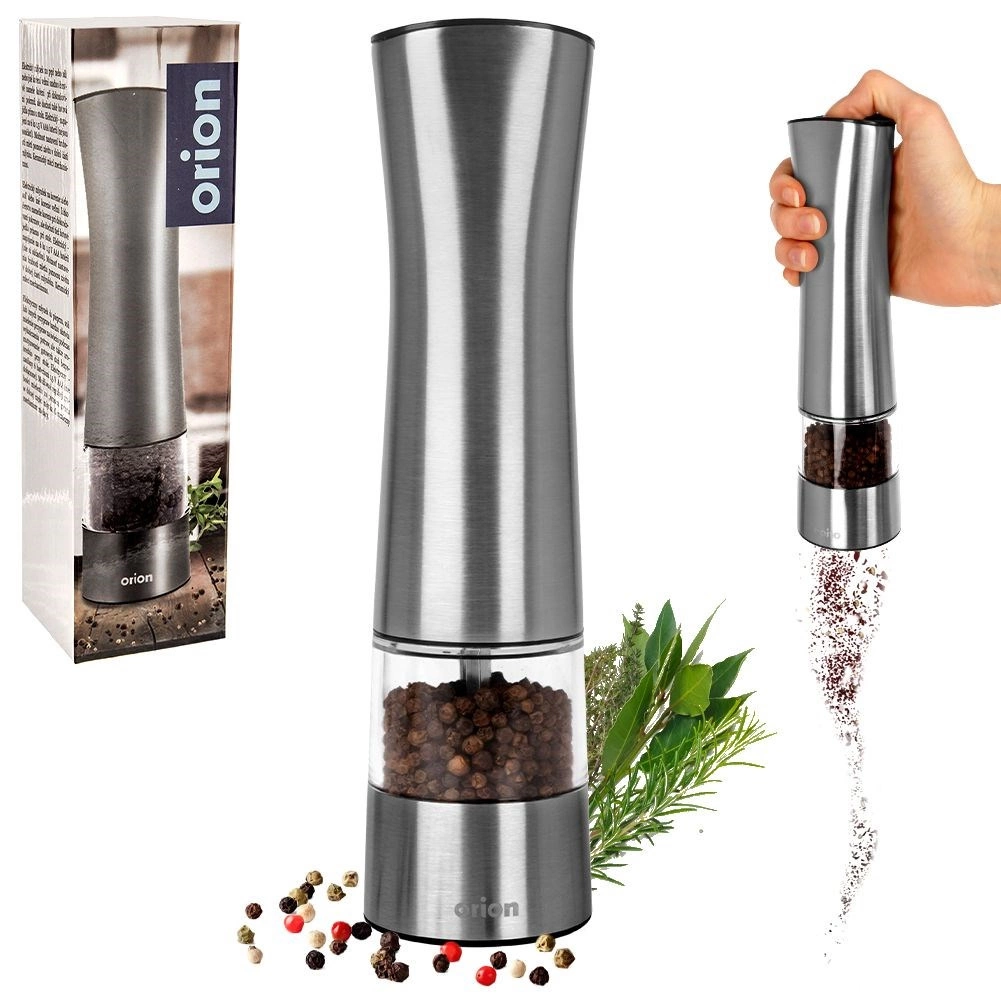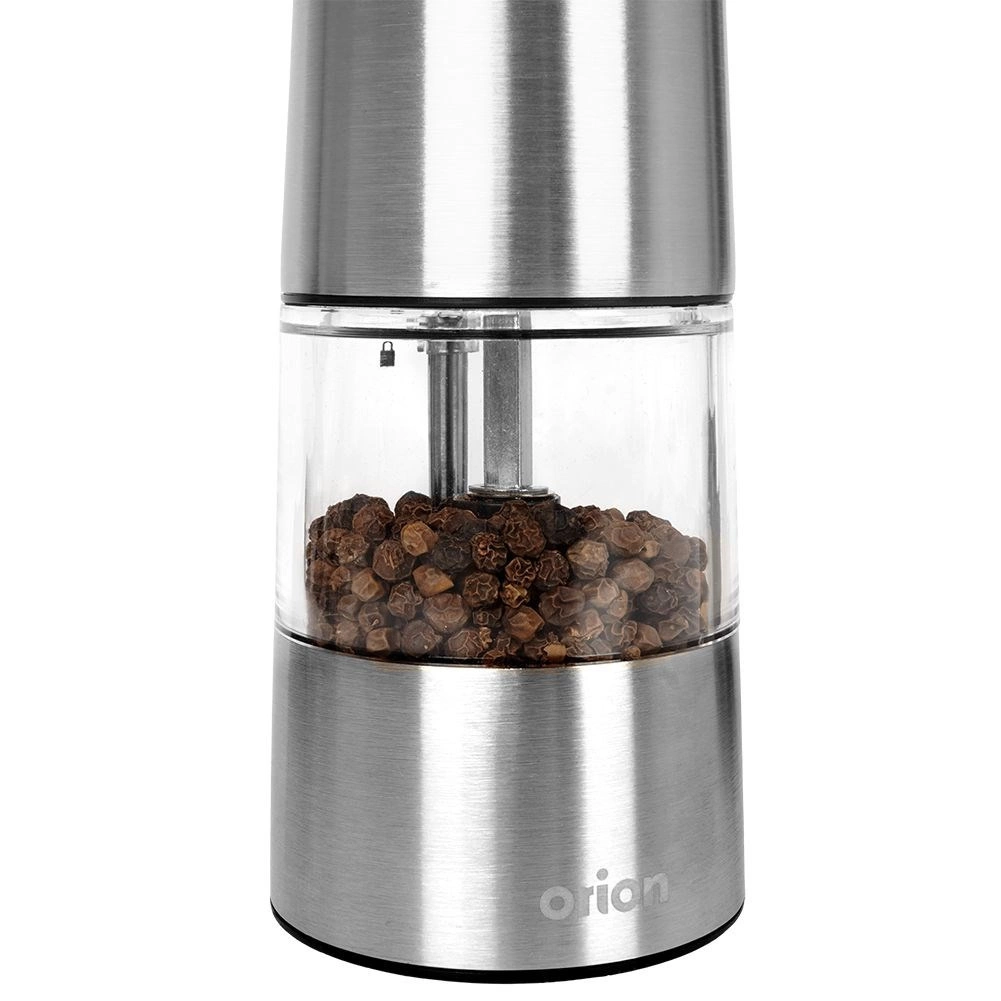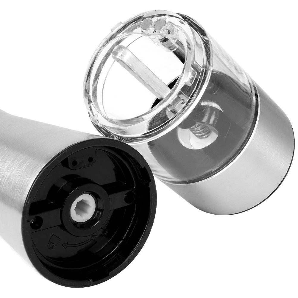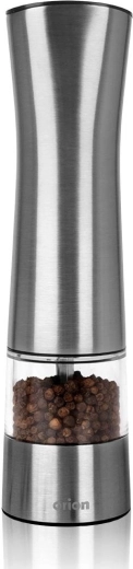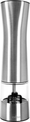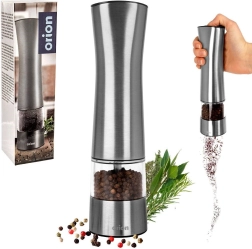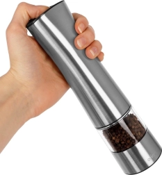 Élégant moulin électrique en acier inoxydable pour poivre, sel et autres épices, garantissant des ingrédients fraîchement moulus d’une simple pression. Équipé d’un mécanisme de mouture céramique, d’un réglage continu de la finesse et d’un verrou de sécurité. Alimentation par 6× AAA pour une utilisation à une main pratique et un look moderne sur toute table.