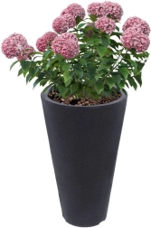 Ce pot conique haut en anthracite élégant se distingue par son look minimaliste et son usage polyvalent. Le matériau effet pierre est léger, robuste et facile à nettoyer – il suffit de rincer les saletés à l’eau.