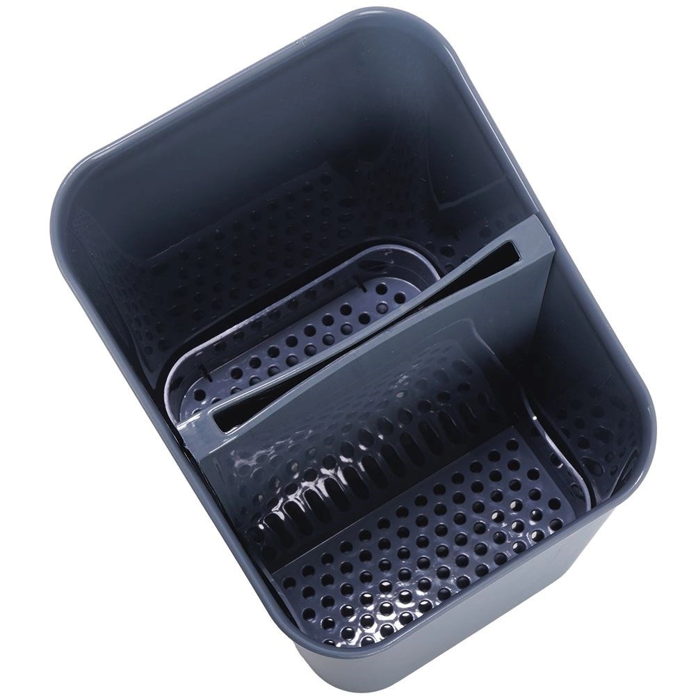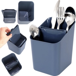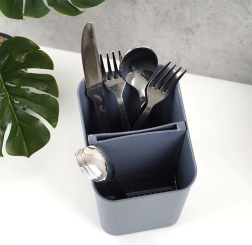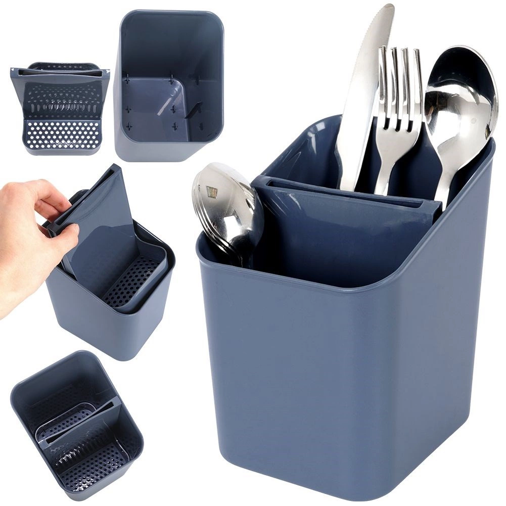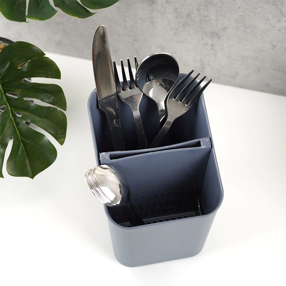 Égouttoir et porte-couverts pratique en élégante couleur grise pour un rangement clair et un séchage efficace. Il possède deux compartiments séparés, un séparateur amovible avec trous d’évacuation et il est léger et résistant. Idéal pour le séchage et l’organisation des couverts et ustensiles de cuisine, facile à nettoyer et compatible lave-vaisselle.