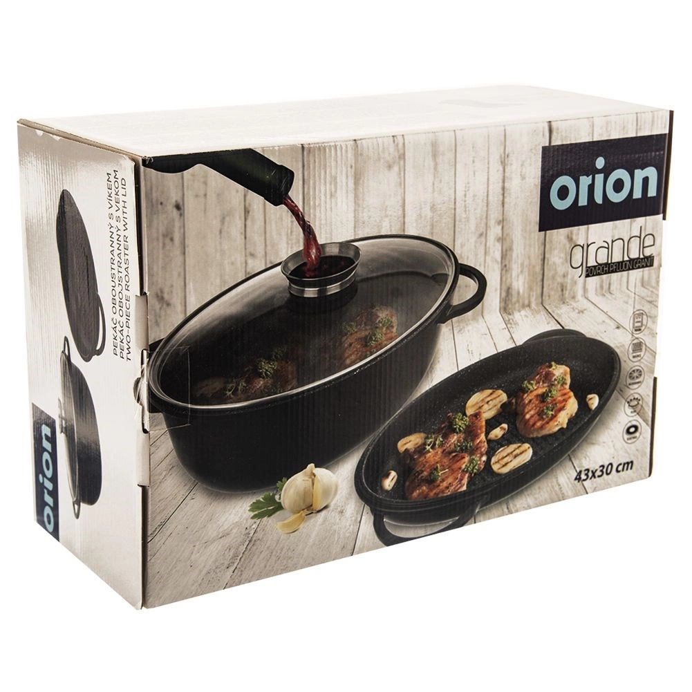 Ce set bien pensé combine une rôtissoire ovale profonde de 10 l, une poêle-gril pouvant aussi servir de couvercle, et un couvercle en verre résistant à la chaleur avec doseur. La structure durable en aluminium moulé accumule remarquablement la chaleur et le revêtement antiadhésif granit PFLUON GRANIT empêche les aliments d’attacher, permettant une cuisson avec un minimum d’huile.