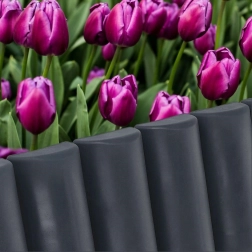 Le plastique de qualité, couleur graphite, ne craint ni le gel, ni les UV, ni la pluie. La palissade conserve sa forme et sa couleur et maintient durablement des lignes nettes pour vos massifs.