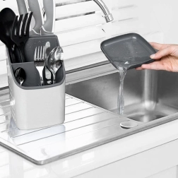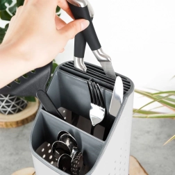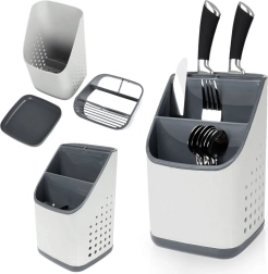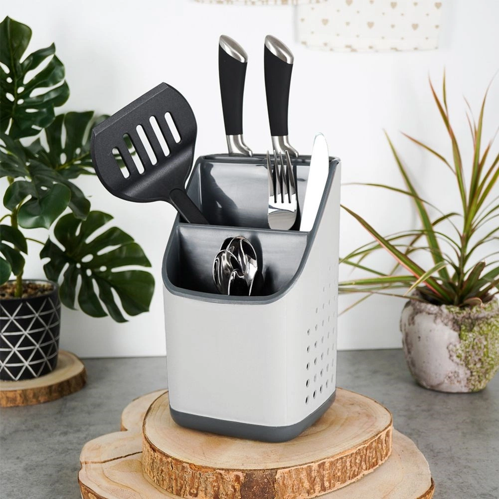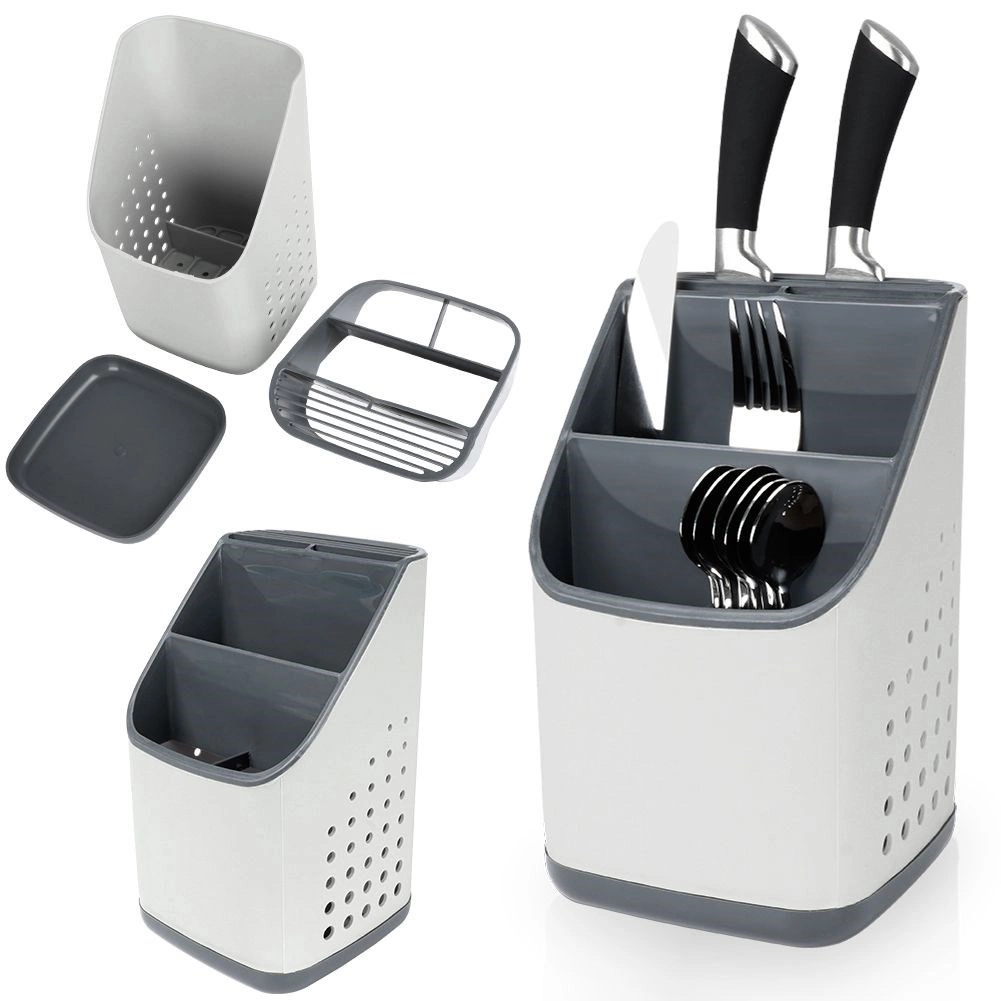 Égouttoir et organiseur pour couverts, couteaux et ustensiles de cuisine – gris 14 × 14 × 23 cm