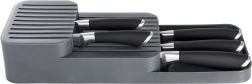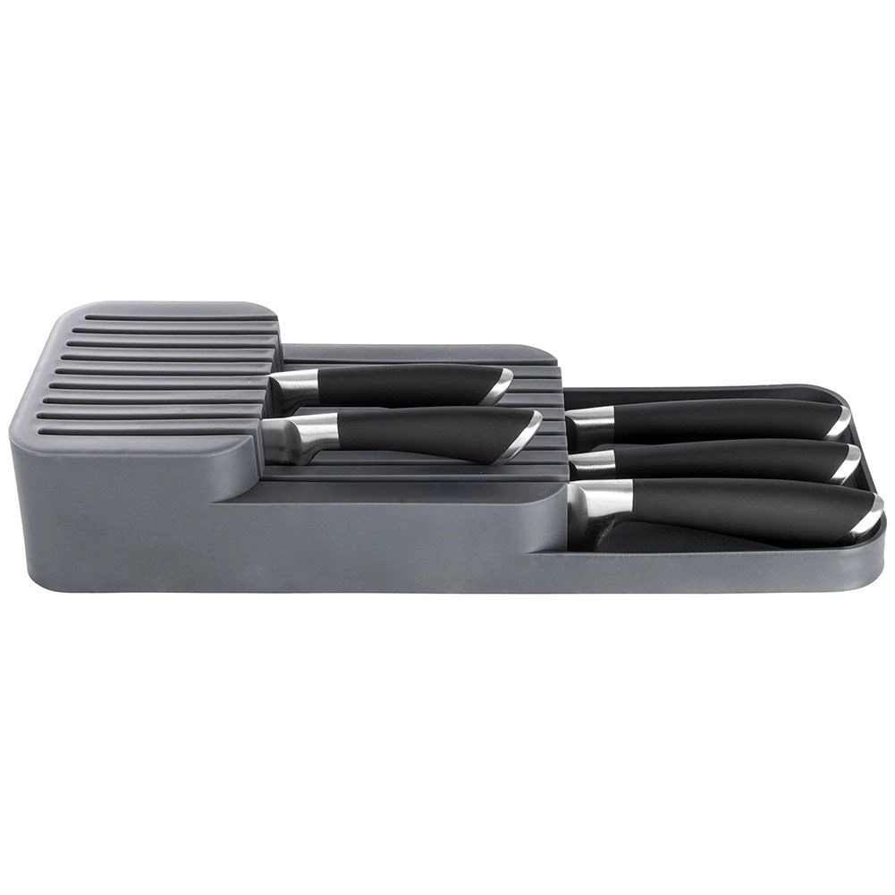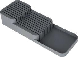 Cet organisateur pratique en plastique résistant garde votre matériel de cuisine clair et en sécurité. Grâce à sa conception intelligente, les couteaux se rangent sur deux niveaux, occupant un minimum d’espace tout en restant facilement accessibles. Sa couleur grise et son design épuré s’intègrent parfaitement dans toute cuisine moderne.