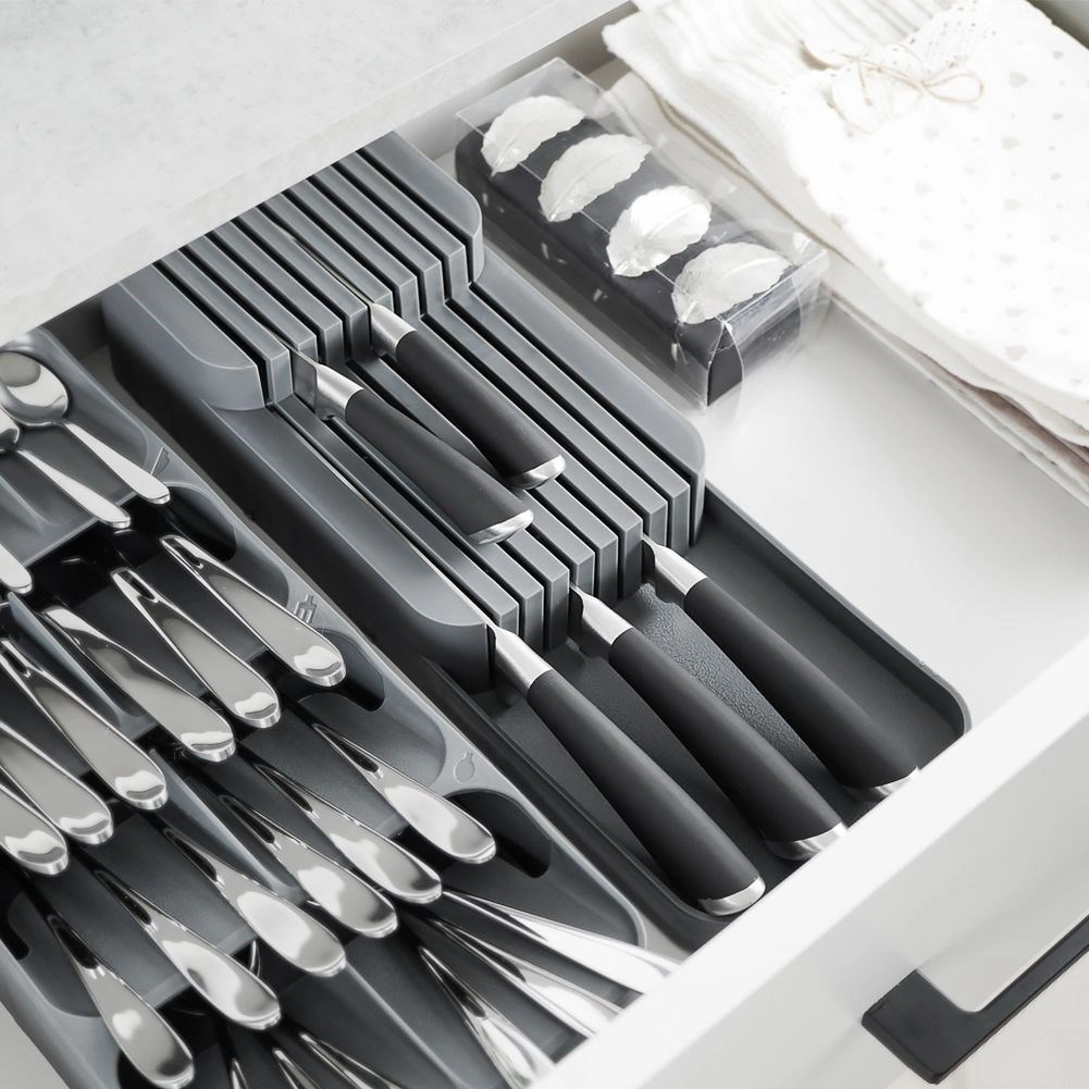 La conception étagée et multi-niveaux permet de stocker davantage de couteaux dans un espace réduit tout en gardant le tiroir ordonné.