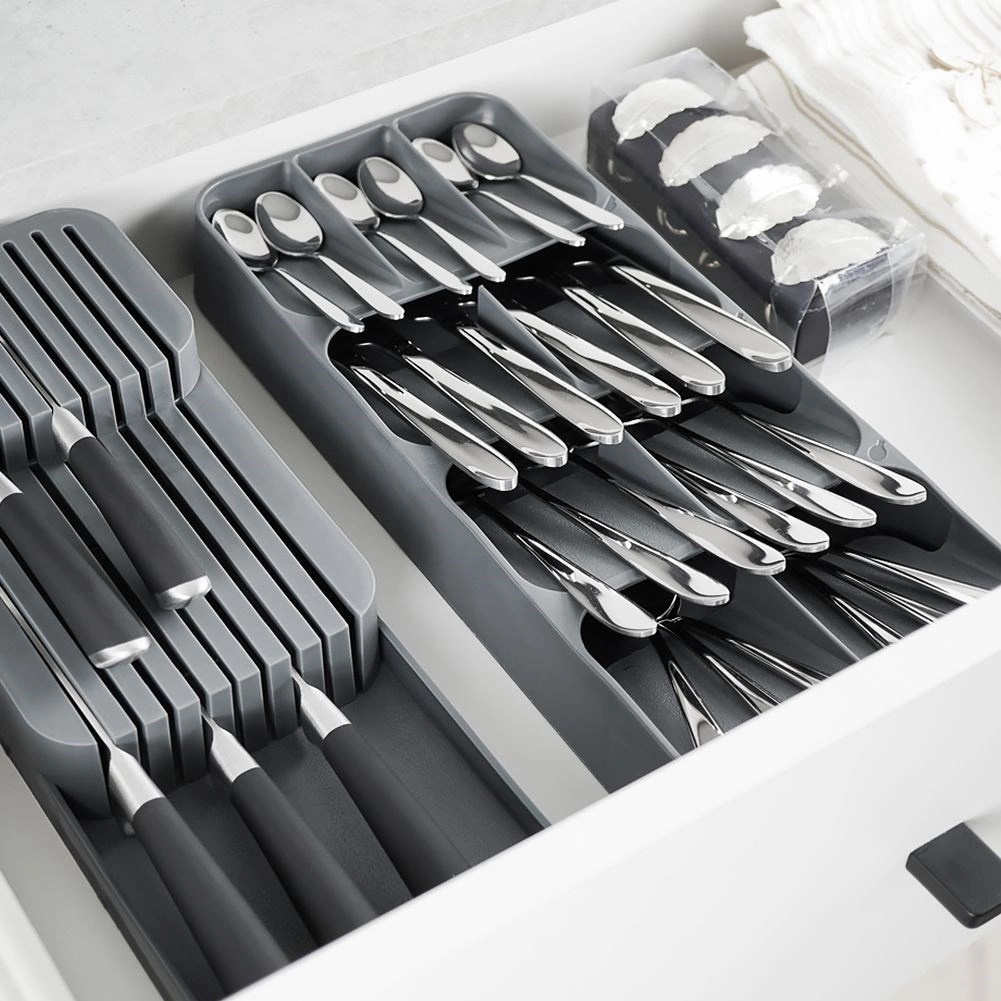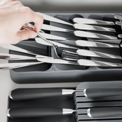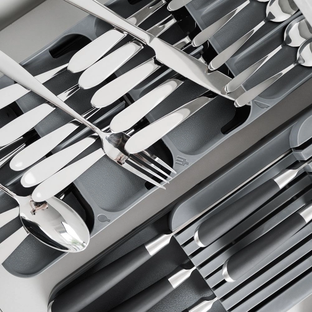 Neuf compartiments intelligemment agencés et une organisation sur plusieurs niveaux maintiennent tous les couverts à leur place et à portée de main.