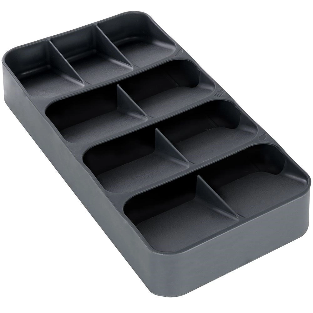 Gardez votre cuisine bien rangée avec le compact organiseur pour couverts Vilde. Grâce à sa conception astucieuse à plusieurs niveaux et à ses 9 compartiments, il offre une économie d’espace maximale, un tri clair des fourchettes, cuillères, couteaux et petites cuillères, ainsi qu’un rangement sécurisé des couteaux. Fabriqué en plastique résistant dans une élégante couleur grise et conçu pour s’adapter à la plupart des tiroirs de cuisine.
