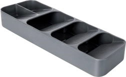 Pratique organisateur gris pour couverts à tiroir, dimensions 39 × 11,5 × 5,5 cm, pour garder vos ustensiles de cuisine parfaitement ordonnés. Grâce à ses 5 compartiments et à son agencement multi-niveaux, il accueille cuillères, fourchettes, couteaux et cuillères à thé tout en économisant de la place dans le tiroir. Fabriqué en plastique résistant pour un entretien facile et une longue durée de vie, avec un format universel adapté à la plupart des tiroirs.
