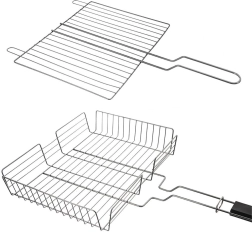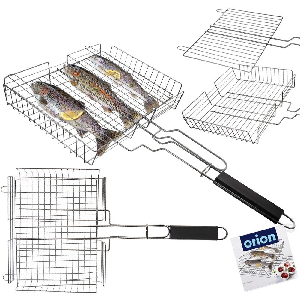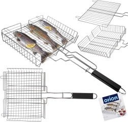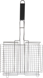 Pratique panier de grillade fermable en acier chromé pour un retournement facile et une cuisson uniforme. Idéal pour les poissons, la viande et les légumes, avec une longue poignée pour une manipulation sûre et des bords plus hauts pour les petits ingrédients.