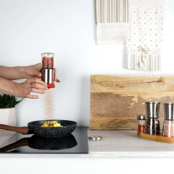 Le corps métallique élégant tient agréablement en main, l’élément antidérapant assure une prise sûre et une mouture facile même d’une seule main. Le couvercle pratique protège le contenu de l’air et de l’humidité, de sorte que les épices restent fraîches plus longtemps et parfumées.