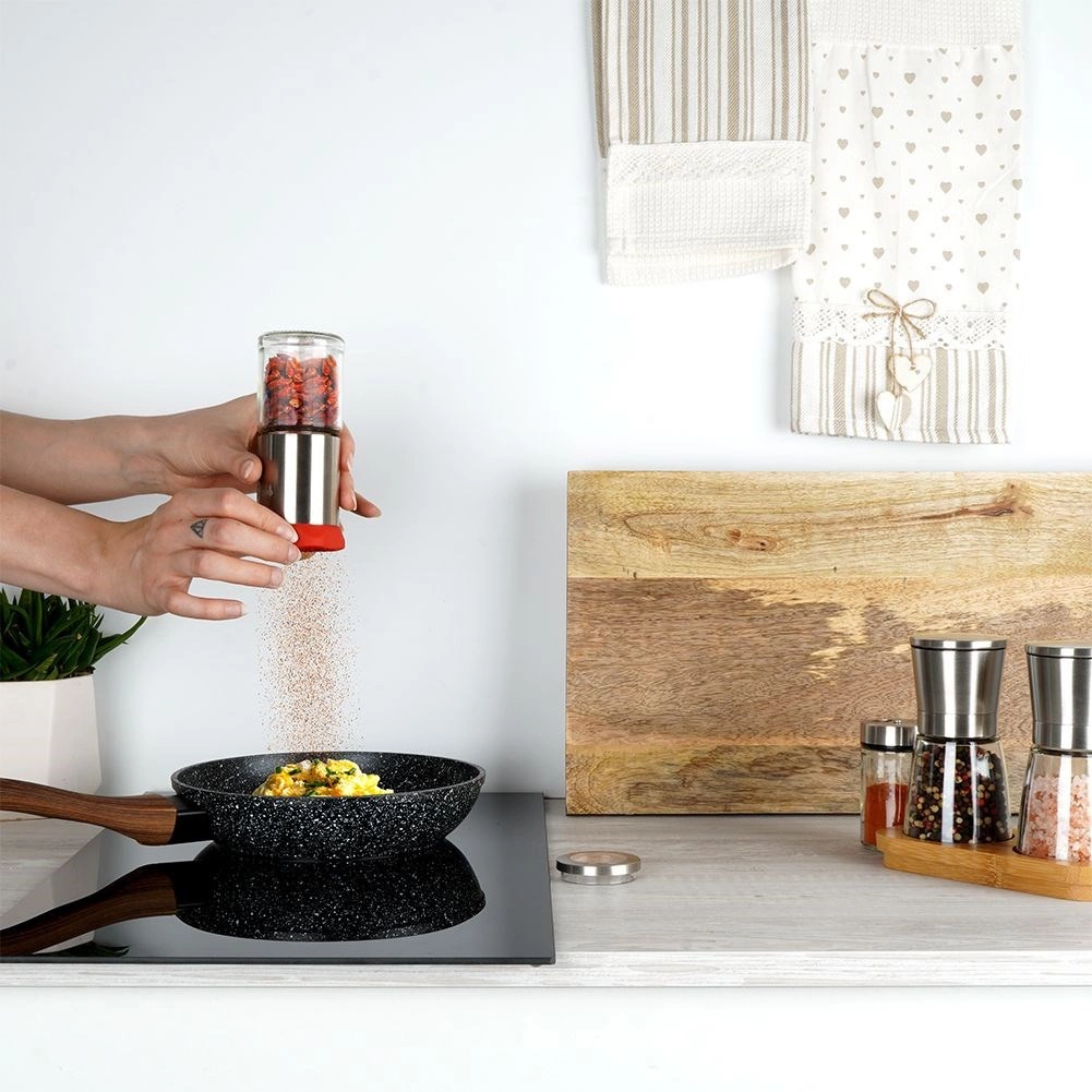 Le verre transparent permet de contrôler la quantité et le type d’épices et apporte une touche élégante sur le plan de travail.