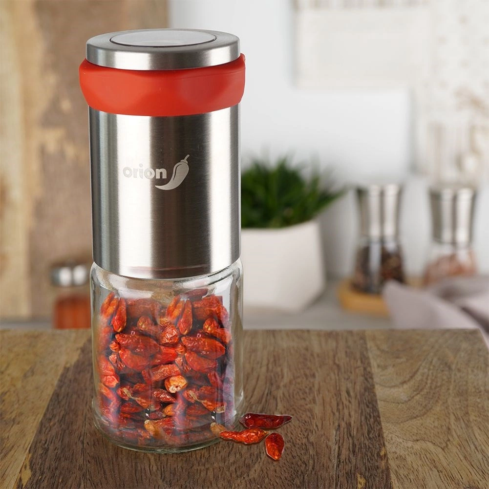 Moulin manuel élégant pour piment, poivre et herbes, idéal pour des épices fraîchement moulues juste avant le service. Il combine un récipient en verre avec un mécanisme en acier inoxydable robuste pour une coupe fine et efficace des piments séchés sans les écraser. Sa forme ergonomique avec prise antidérapante tient bien en main et son design élégant sublime toute cuisine. Inclus, un couvercle de protection contre l’humidité pour une fraîcheur prolongée.