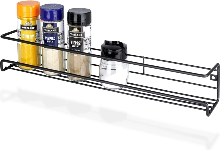 Cette étagère murale en métal noir est idéale pour ranger clairement vos épices, mais elle est également parfaite pour les cosmétiques dans la salle de bain, les petits objets déco, cadres photo ou souvenirs dans le salon. Son design industriel minimaliste (LOFT) se combine facilement avec différents styles d’intérieur.