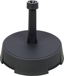 Ce support massif est un choix idéal pour ancrer solidement votre parasol sur le balcon, la terrasse ou dans le jardin. Il combine un noyau en béton robuste avec une structure en plastique résistant, mieux adaptée à l’humidité et au rayonnement solaire. Grâce au collier universel, vous fixez facilement le mât du parasol et le maintenez ferme et parfaitement vertical.