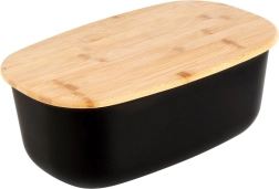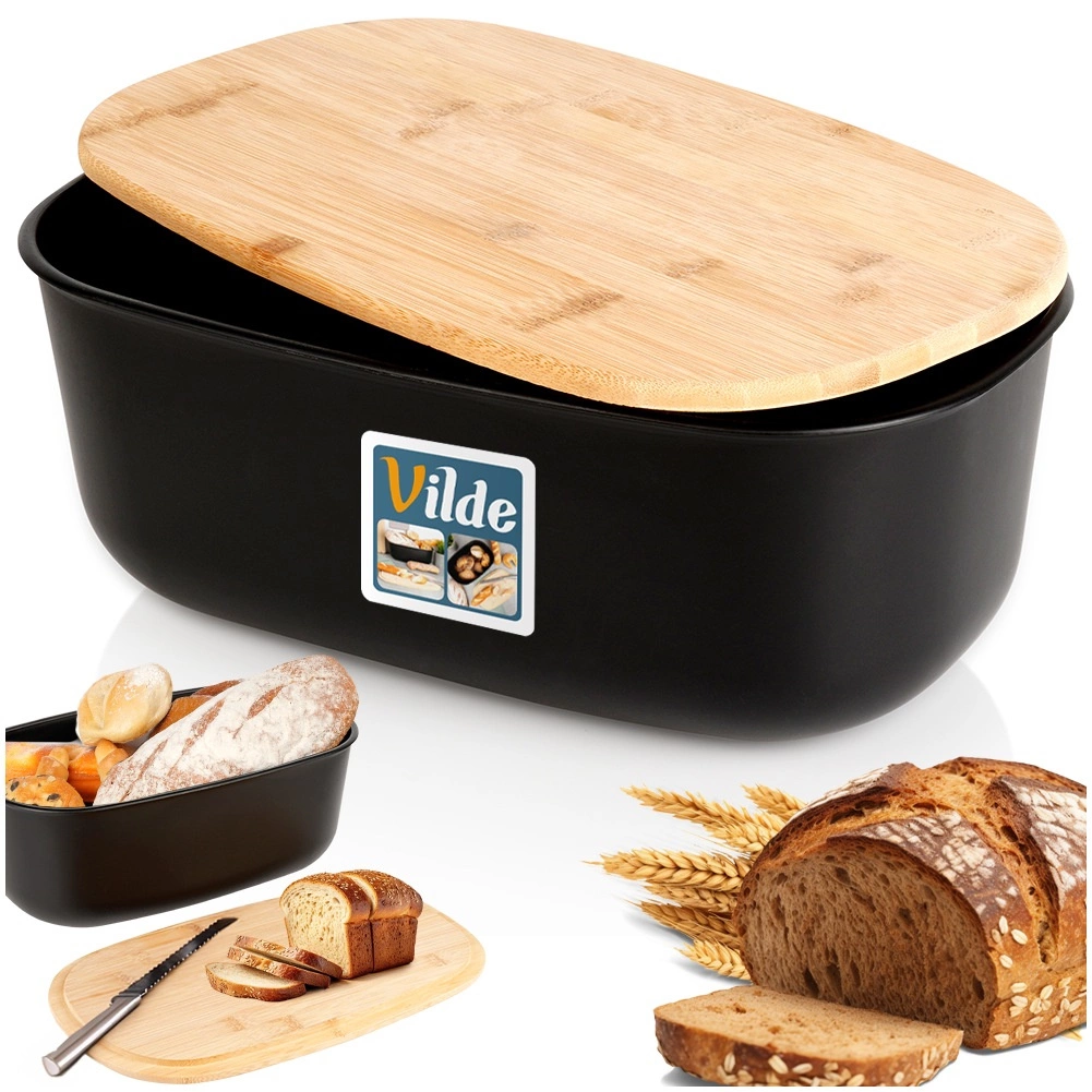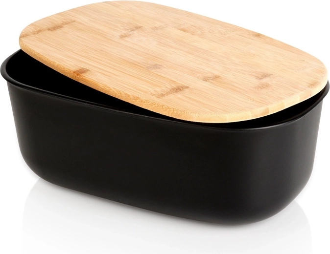 La boîte à pain spacieuse aux dimensions 39 × 23,5 × 15,5 cm offre suffisamment de place pour le pain, les baguettes, les petits pains et les pâtisseries. Sa forme ovale et sa finition noire mate s’intègrent parfaitement aux cuisines modernes comme classiques, tandis que le couvercle en bambou apporte une touche naturelle.