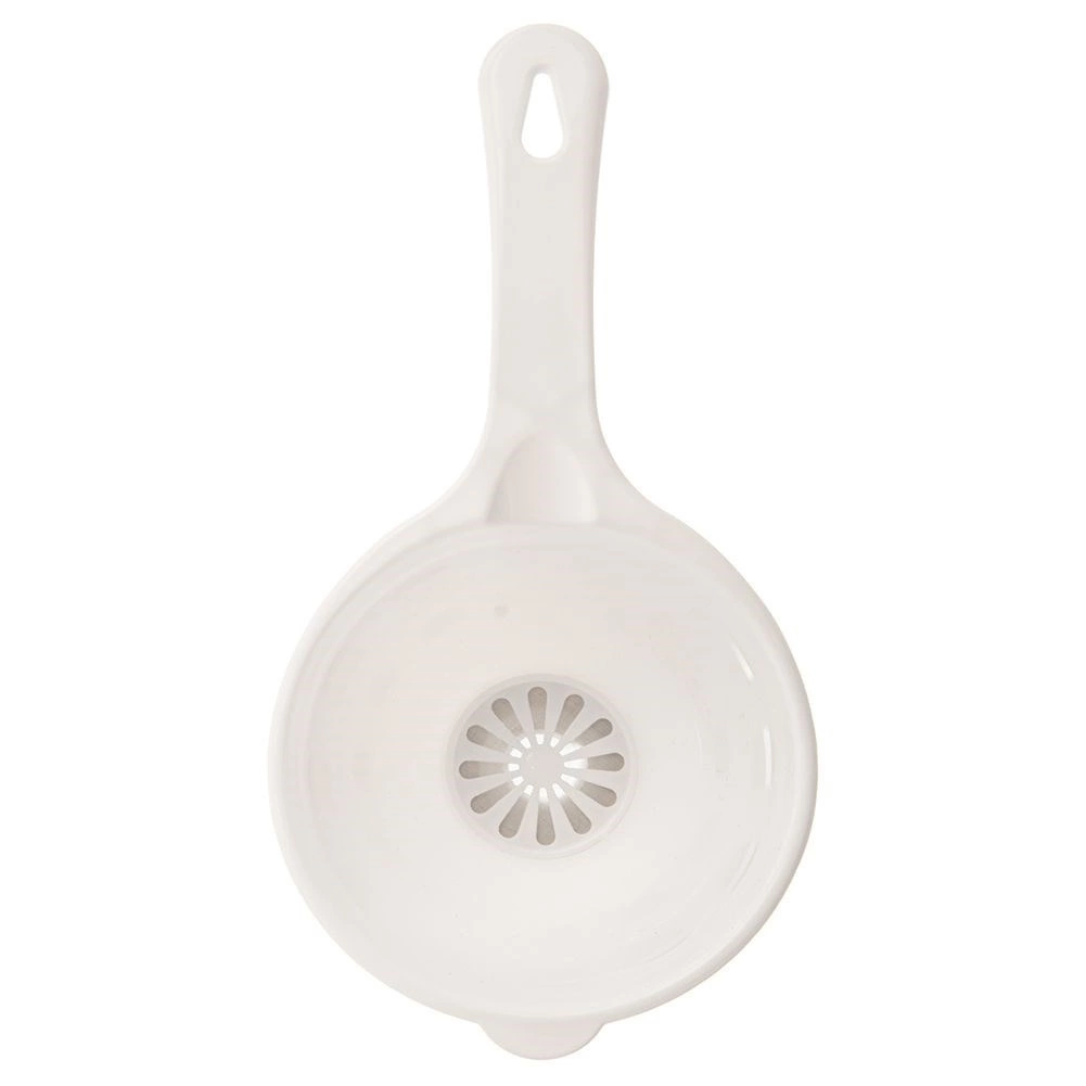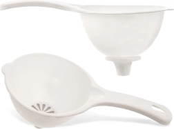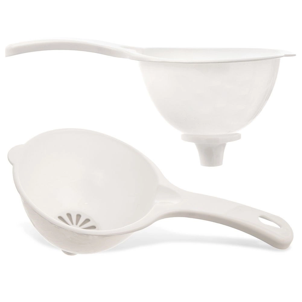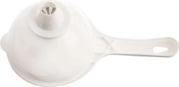 Entonnoir universel avec filtre, de couleur blanche, qui facilite le transvasement des boissons et des ingrédients fins sans éclaboussures. Le filtre intégré retient les morceaux de fruit, le dépôt ou les petites particules, pour que seul un liquide clair s’écoule dans la bouteille ou le verre. Grâce à la poignée robuste, vous gardez toujours contrôle et stabilité lors du versement.
