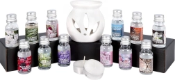 Les huiles parfumées de 10 ml, aux tonalités variées, vous permettent de choisir un parfum selon votre humeur – des agrumes frais aux accords boisés et chaleureux. La lampe peut être utilisée avec les huiles du coffret ou avec des cires parfumées. Il suffit de verser quelques gouttes d’huile dans la coupelle avec de l’eau, d’insérer une bougie chauffe-plat et de profiter en quelques instants d’une aromathérapie relaxante.