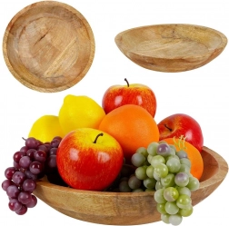 Élégant bol en bois exotique de manguier, d’un diamètre de 30 cm et d’un volume de 1,5 l, idéal pour servir des salades, des snacks et des plats chauds. Il se distingue par sa veine naturelle du bois, sa résistance à l’humidité et aux odeurs et son utilisation polyvalente, de l’art de la table au rôle de coupe à fruits décorative.