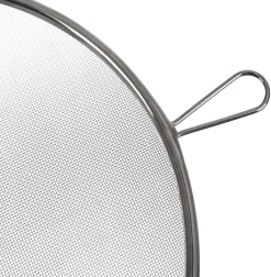Bord métallique robuste et œillet pratique pour l’accrochage. Après utilisation, le tamis passe sans problème au lave-vaisselle.