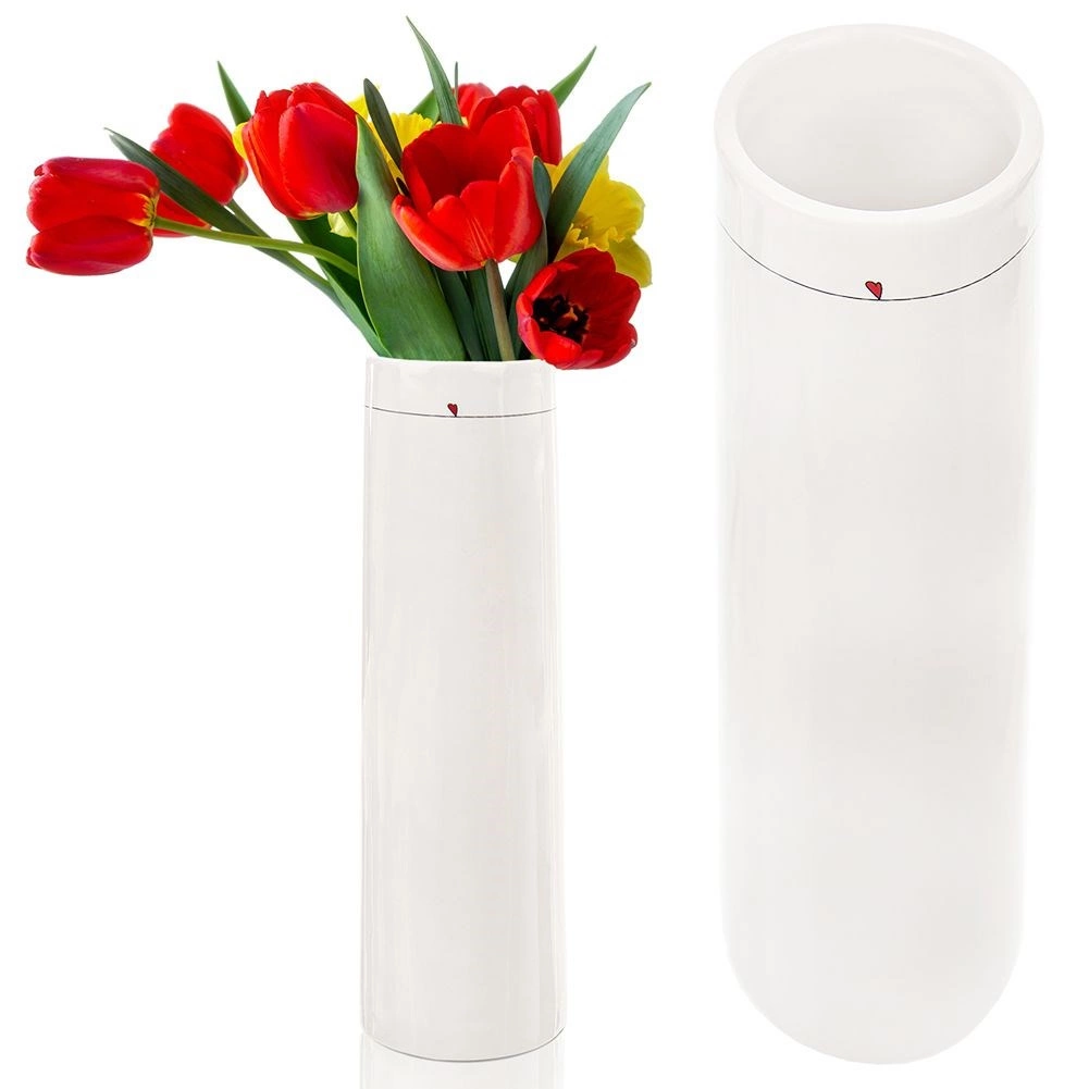 Cette haute vase élancée à la glaçure blanche séduit par son look minimaliste avec un petit cœur rouge près du bord supérieur. Convient aux bouquets petits à moyens, à l’eucalyptus ou aux graminées séchées, et se marie aisément avec les styles moderne, scandinave ou classique.