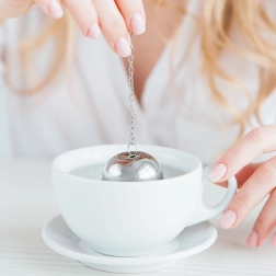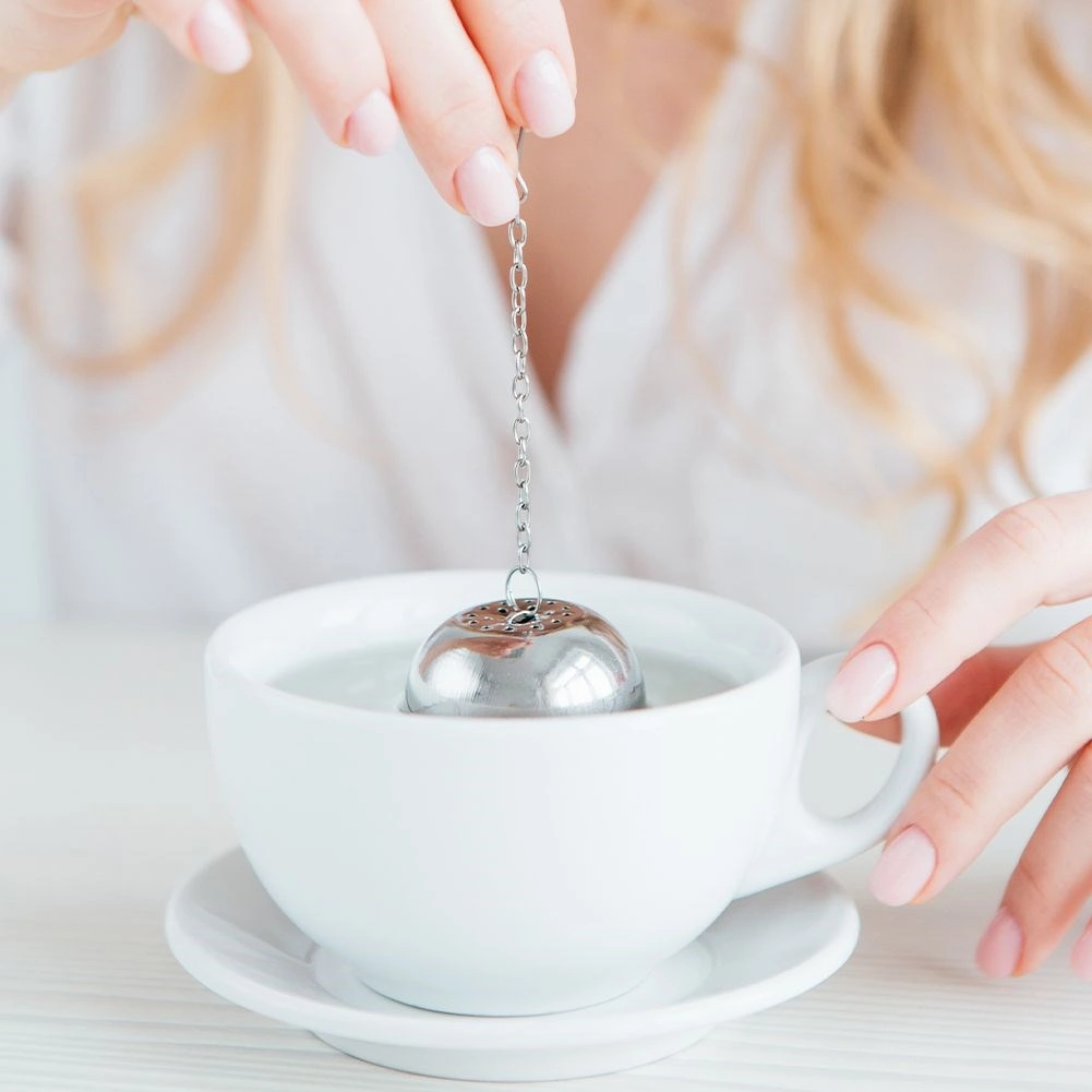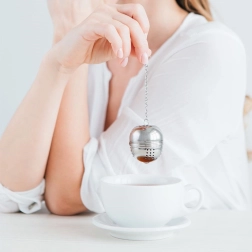 La passoire a une forme compacte en boule et une fermeture à clip sécurisée qui empêche toute ouverture involontaire. La chaînette avec crochet facilite la manipulation et l’accrochage sur une tasse, un verre ou une théière. Utile aussi en cuisine pour les herbes et les épices dans les soupes ou bouillons.