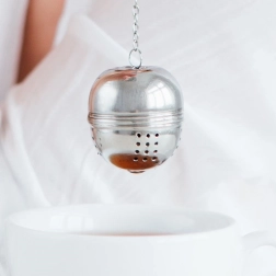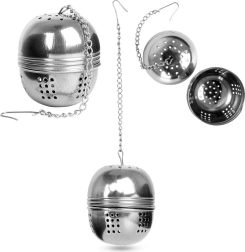 Passoire à thé en acier inoxydable en forme de boule de 5 cm de diamètre, garantissant une infusion limpide sans feuilles et un arôme maximal du thé et des herbes. Grâce à sa chaînette avec crochet, elle se suspend facilement à une tasse ou une théière, sa fermeture sécurisée évite tout déversement et son acier inoxydable de qualité assure une longue durée de vie.