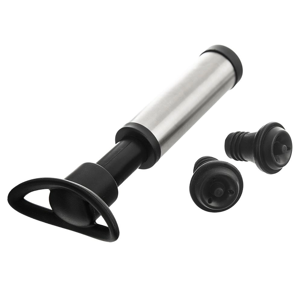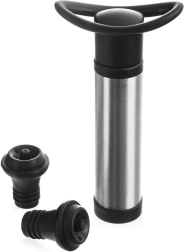 Profitez d’une bouteille de vin ouverte les jours suivants sans perte de goût ni d’arôme. Ce set de mise sous vide pour le vin associe une pompe en inox durable à une paire de bouchons en silicone noirs. En expulsant l’air de la bouteille, vous réduisez nettement l’oxydation et prolongez la fraîcheur de la boisson.