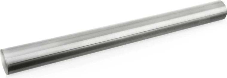 Rouleau en acier inoxydable de 40 cm de longueur et 3,8 cm de diamètre, idéal pour un étalage précis et uniforme du fondant, de la pâte d’amande, des pâtes sablées ou feuilletées. Sa surface lisse et sans soudure assure une adhérence minimale et des résultats nets sans déchirure.