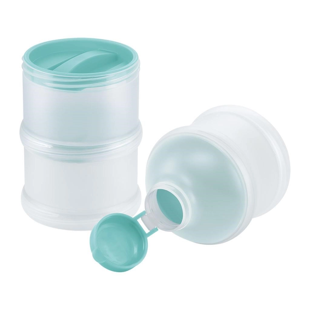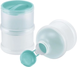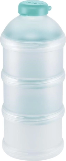 Le doseur pratique pour lait en poudre NUK, dans une élégante couleur menthe, est idéal pour les voyages comme pour une utilisation quotidienne. L’ensemble de trois contenants séparables conserve en toute sécurité des portions pré-dosées et, grâce à l’embout à vis avec entonnoir, vous versez facilement et sans désordre le lait dans le biberon. Chaque récipient est indépendamment refermable et l’ensemble est sans BPA.