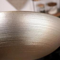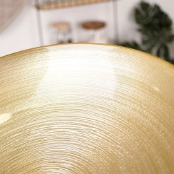 Bol en verre élégant en finition dorée, diamètre 30 cm et capacité 2,2 l. Idéal pour les salades, les fruits et le service de plats. La surface extérieure mate avec de fines rayures horizontales apporte une touche décorative et donne du style à votre table. Usage polyvalent, look spectaculaire et taille pratique font de ce bol un excellent allié pour le quotidien comme pour les occasions festives.
