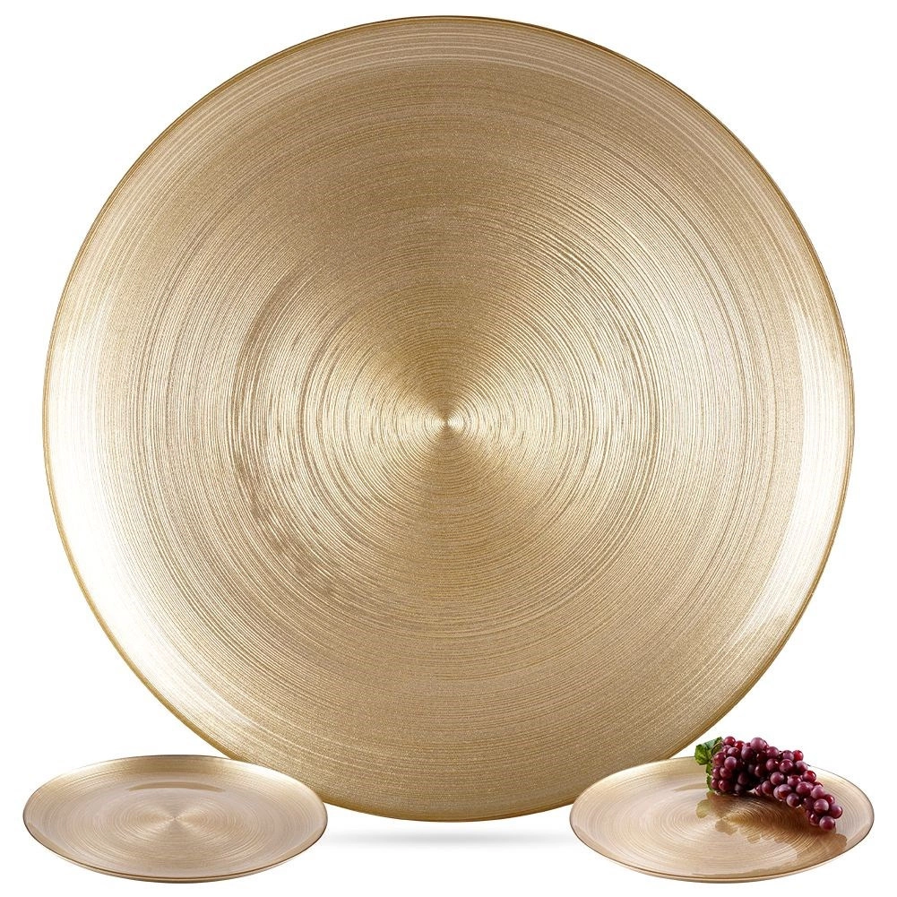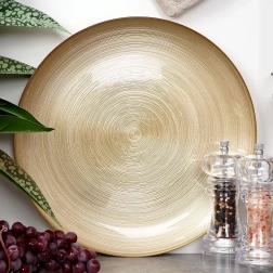 Élégante assiette plate de 32,5 cm de diamètre dans une luxueuse couleur dorée, idéale pour le quotidien comme pour les occasions spéciales. Fabriquée en verre de qualité avec un dessous mat élégant orné de fines rayures, elle offre une utilisation polyvalente pour le petit-déjeuner, le déjeuner, les desserts, ou encore comme plateau de service pour les entrées. Grâce à sa surface lisse, elle se nettoie facilement et complète à merveille toutes les tables, classiques comme modernes.