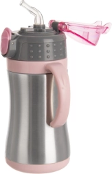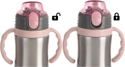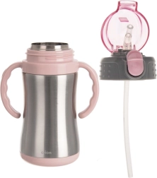 Profitez d’un confort de boisson sans renversement. Le gobelet est fabriqué en acier inoxydable de qualité à l’intérieur comme à l’extérieur, le couvercle et les poignées sont en plastique résistant de couleur rose. L’isolation sous vide aide à maintenir une température stable de la boisson plus longtemps, qu’il s’agisse de thé, de cacao ou d’une limonade rafraîchissante.