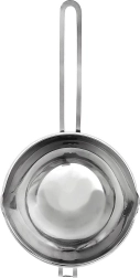 Pratique bol en acier inoxydable pour bain-marie d’une capacité de 1,2 l, idéal pour la fusion douce du chocolat, du beurre et de la cire. Grâce à sa longue poignée, à son crochet stabilisateur et à ses becs verseurs latéraux, il est confortable à utiliser et permet un transvasement sécurisé. Fabriqué en acier inoxydable de qualité, compatible lave-vaisselle et sans danger pour les aliments.