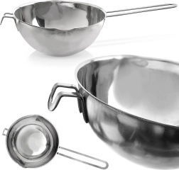 Ce bol en inox pour bain-marie est conçu pour un chauffage précis et délicat des ingrédients, sans risque de brûlure. Parfait pour les pâtissiers amateurs comme pour les passionnés de bougies faites main – il est idéal pour faire fondre le chocolat, le beurre et la cire. Sa longue poignée assure une prise sûre et le crochet permet au bol de se fixer fermement sur le bord de la casserole.