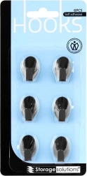 Crochets adhésifs en acier, noirs, 3 × 2 cm, lot de 6
