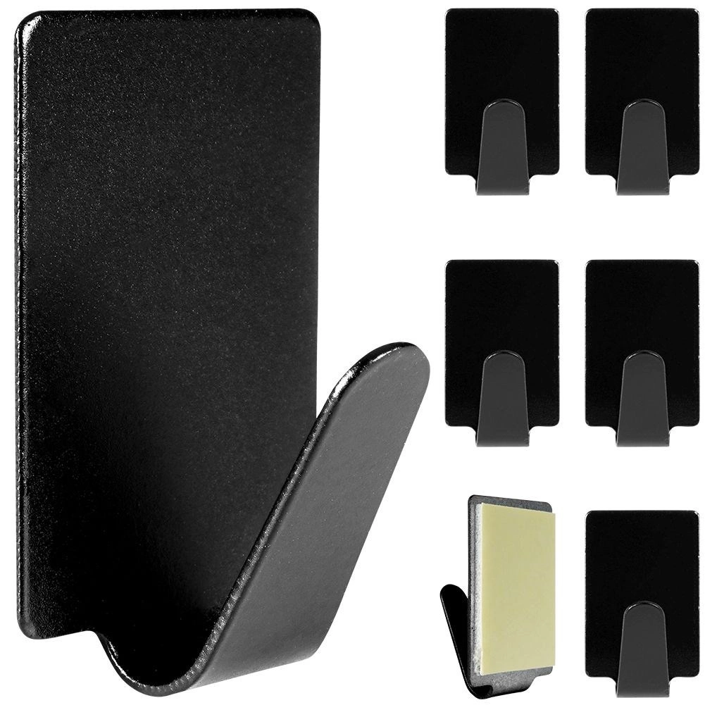 Des crochets adhésifs élégants et pratiques en noir mat pour l’organisation quotidienne dans la cuisine comme dans la salle de bain. Le lot de 6 pièces en acier inoxydable offre une installation facile sans perçage, une adhérence solide et une utilisation polyvalente pour serviettes, torchons, clés ou câbles.