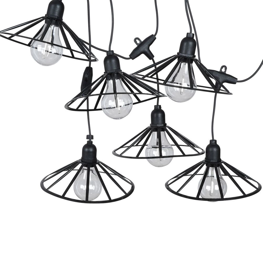 Six ampoules LED transparentes dans des cages métalliques noires diffusent une lumière chaude agréable et un effet décoratif saisissant.