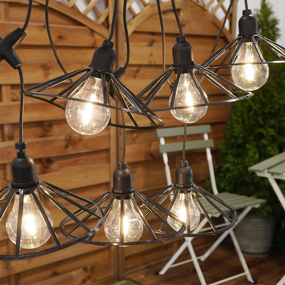 Cette guirlande lumineuse décorative apporte une touche chaleureuse à votre espace extérieur. Six ampoules LED transparentes à lumière chaude, dans d’élégantes petites cages noires, diffusent la lumière de manière homogène et créent une atmosphère agréable pour les moments du quotidien comme pour les occasions festives.