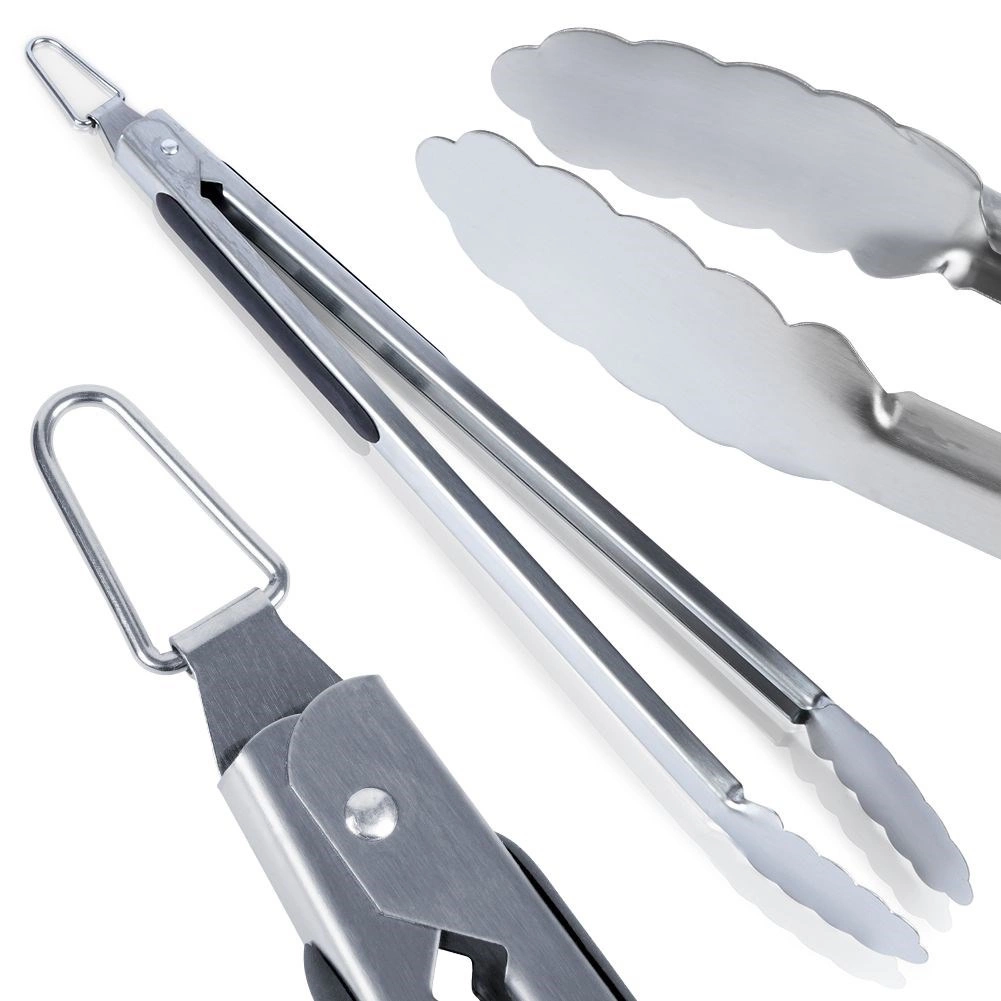 Pince de grillade pratiques et robustes en acier inoxydable pour retourner et servir en toute sécurité. Grâce à la longue poignée, aux inserts antidérapants et à l’œillet de suspension, elles offrent une prise sûre, une utilisation polyvalente et une longue durée de vie.