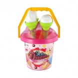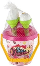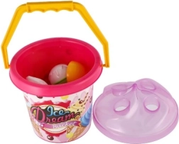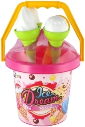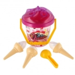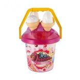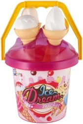 Le seau en plastique léger avec anse, 3 cornets et la cuillère à glace sont parfaits pour le bac à sable, la plage et le jardin. Grâce à la certification CE, le set est adapté et sûr pour les plus petits.