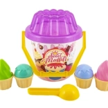 Le set comprend quatre « boules » colorées et des cornets, grâce auxquels les enfants créent des glaces en sable et stimulent leur imagination en jouant.