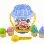Le seau léger avec anse et motif Sweet Muffin sert d’espace de rangement pour tout le set et facilite le transport dans le filet.