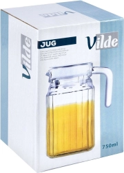 Élégant pichet en verre avec couvercle d’une capacité allant jusqu’à 650 ml, en verre transparent à structure rainurée. Il offre un versement confortable grâce au bec profilé, un couvercle pratique contre les impuretés et les insectes, et une utilisation polyvalente pour l’eau, les jus ou le thé glacé. Un accessoire stylé pour chaque table.