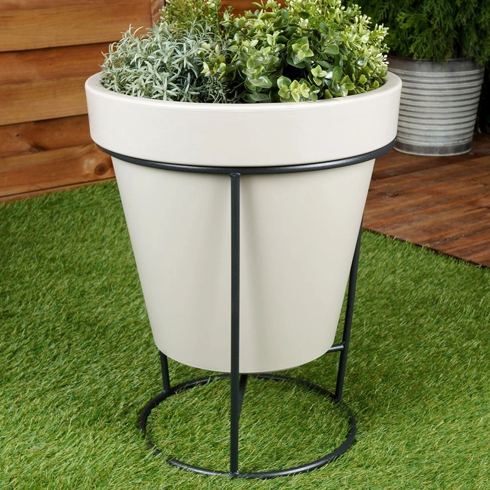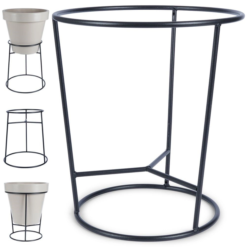 Élégant support de pot de fleurs double face en acier résistant, finition noire, pour une présentation stylée des plantes à l’intérieur comme à l’extérieur. Il offre deux côtés pour différents diamètres de pots et est particulièrement solide, pratique et décoratif.