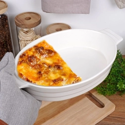 Ce plat à gratin en céramique de forme ovale se distingue par sa polyvalence – des lasagnes maison aux pâtes gratinées, en passant par les gratins de légumes. Les poignées intégrées assurent une prise en main sûre du four à la table, tandis que la glaçure blanche intemporelle se marie avec toute vaisselle.